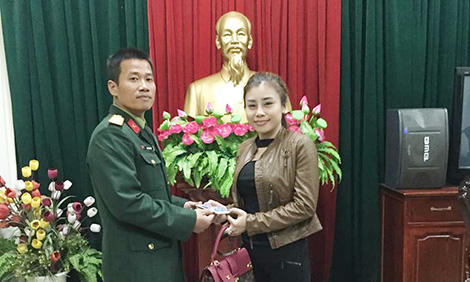 Chị Q.A cảm ơn Trung úy Hà Văn Kiên. |