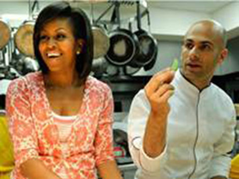 | Michelle Obama và bếp trưởng Sam Kass. |