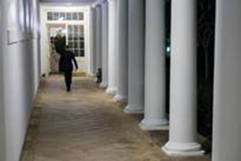 | Obama đi bộ từ Cánh Tây đến sảnh chính Nhà Trắng. |
