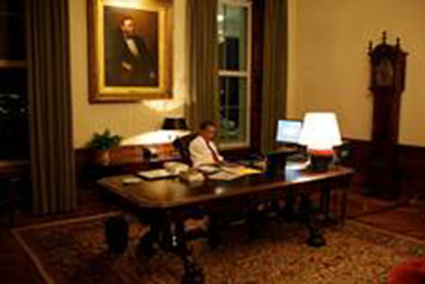 Các trợ lý thân cận nhất của Obama cho biết Tổng thống thường “trói mình đơn độc” suốt 4-5 giờ hằng đêm trong Phòng Hiệp ước này.