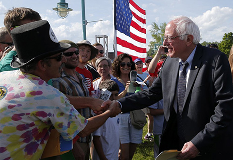 Bernie Sanders tiếp xúc các cử tri ủng hộ ông. |