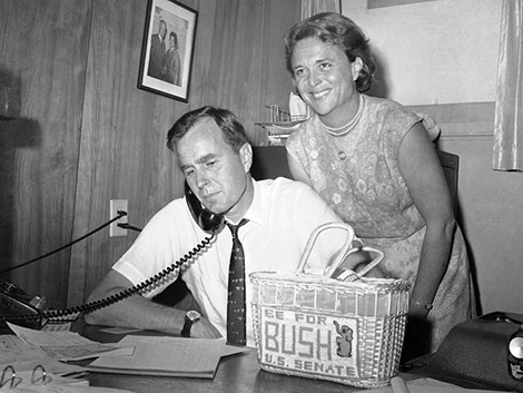 George HW Bush và vợ, Barbara, tại bản doanh chiến dịch tranh cử Thượng nghị sĩ năm 1964.