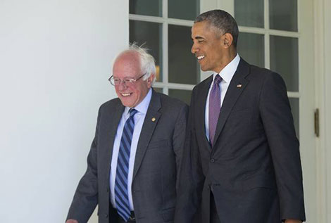 | Ông Bernie Sanders và Tổng thống Obama tại Nhà Trắng. |