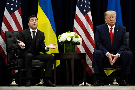 Tổng thống Ukraine Volodymyr Zelensky và Tổng thống Mỹ Donald Trump trong cuộc gặp cuối tháng 9-2019 tại New York. Ảnh: NYTIMES.