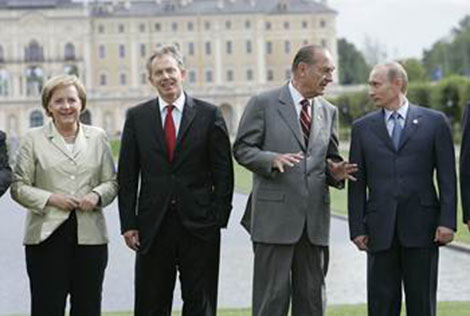 | Ông Chirac (thứ 2 từ phải sang) luôn là chính trị gia theo đường lối cân bằng mềm dẻo trong chính sách đối ngoại. |