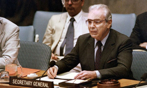 | Tổng Thư ký Liên Hiệp Quốc Javier Perez de Cuellar. |