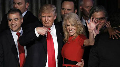 Cùng ngày 22-12, bà Kellyanne Conway cũng được chọn làm cố vấn tổng thống. Bà Conway là nhà chiến lược đóng vai trò quan trọng trong chiến thắng của ông trong cuộc bầu cử tổng thống Mỹ vừa qua. Với vai trò của mình, bà Conway đã giúp định hình những thông điệp trong chiến dịch tranh cử của ông Trump, đồng thời vạch ra kế hoạch để giành đa số phiếu đại cử tri.