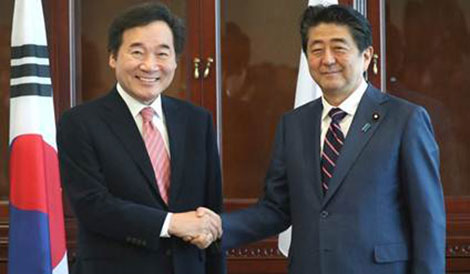 | Thủ tướng Hàn Quốc Lee Nak-yeon và Thủ tướng Nhật Bản Shinzo Abe. |