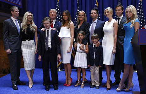 Ông Donald Trump cùng vợ, con gái và các thành viên khác trong gia đình. Ảnh: Reuters.