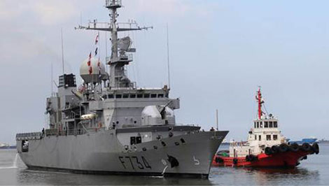 | Hộ tống hạm Pháp Le Vendémiaire (F734) trên đường vào cảng Manila (Philippines) ngày 12-3-2018. |