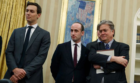 | Miller (giữa) cùng các cố vấn của ông Trump tại Nhà Trắng. |