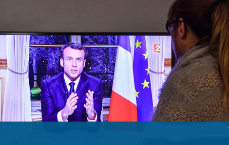 | Tổng thống Pháp Emmanuel Macron phát biểu chúc mừng năm mới 2018 trên truyền hình. |