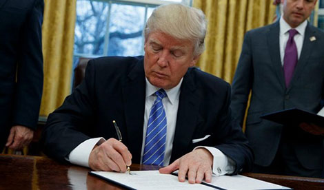 | Tổng thống Mỹ Donald Trump ký sắc lệnh rút khỏi hiệp định TPP. |