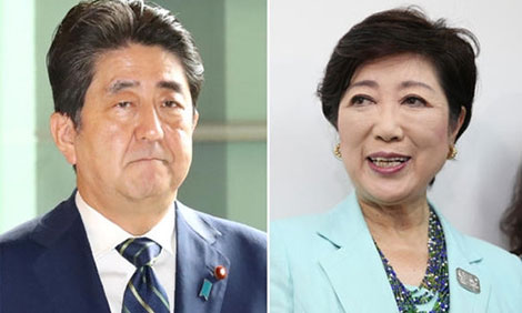Thủ tướng Shinzo Abe và đối thủ nặng ký nhất của ông trong cuộc bầu cử vào tháng 10 tới là bà Yuriko Koike.