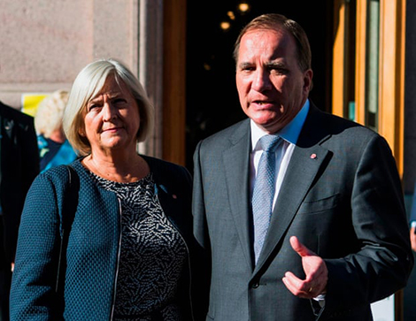 Thủ tướng Thụy Điển Stefan Lofven (bên phải) đứng trước khó khăn lớn với sự nhảy vọt của đảng cực hữu SD sau bầu cử.