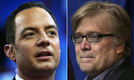 | Reince Priebus và Stephen Bannon, hai nhân vật đầu tiên được Trump bổ nhiệm trong chính quyền mới. |