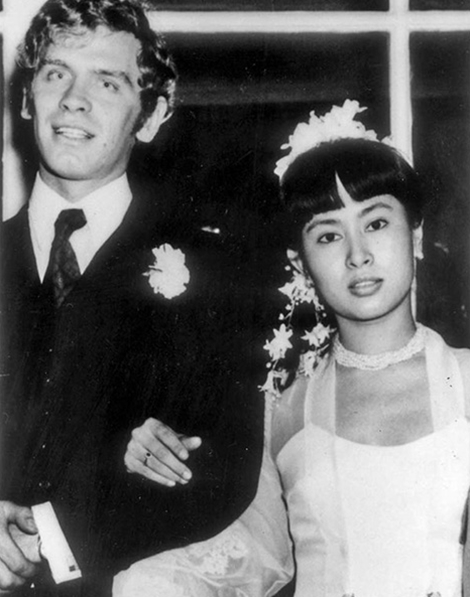 | Bà Aung San Suu Kyi và tiến sĩ Michael Aris trong hôn lễ năm 1972. |