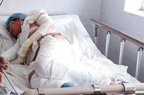 Sau tranh cãi, gã chồng nát rượu đã tưới dầu hỏa, đốt vợ khiến chị bỏng nặng toàn thân.