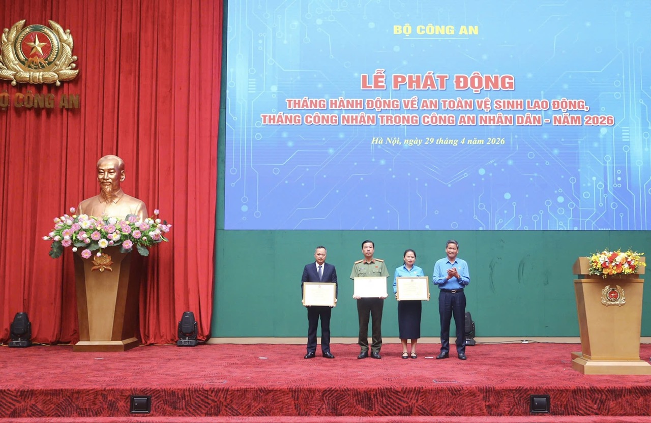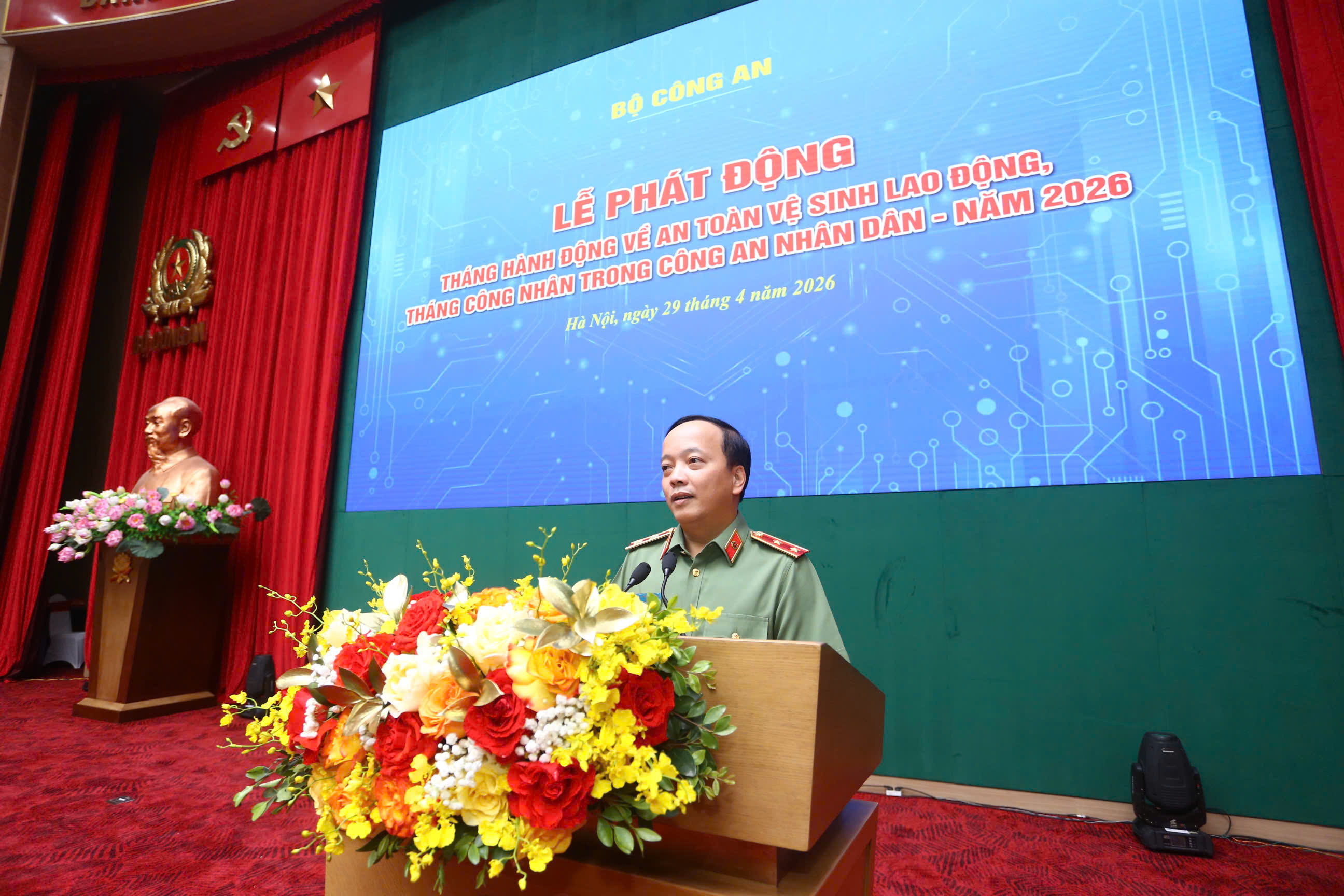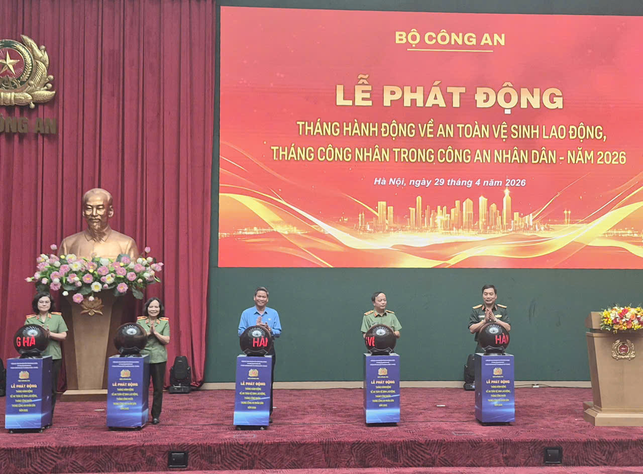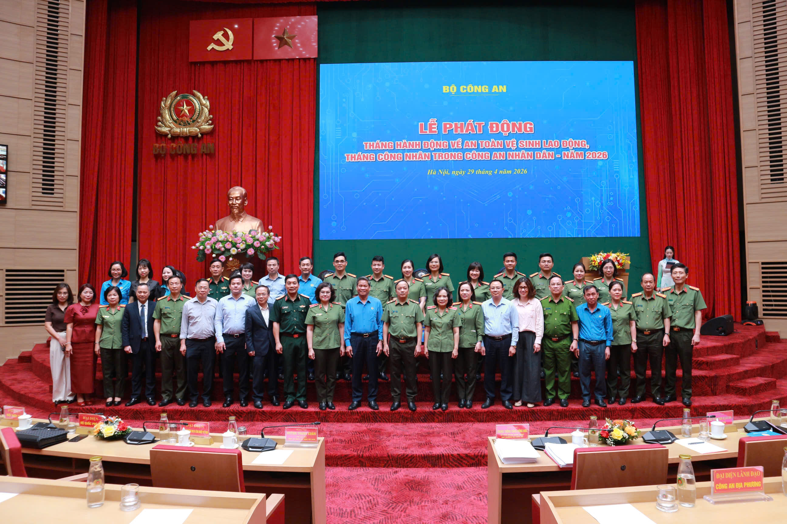 Sáng 29/4, tại Hà Nội, Bộ Công an tổ chức Lễ phát động hưởng ứng Tháng hành động về An toàn, vệ sinh lao động và Tháng Công nhân trong CAND năm 2026. Lễ phát động được truyền trực tuyến từ điểm cầu Bộ Công an tại Hà Nội đến điểm cầu Công an các địa phương trên toàn quốc.