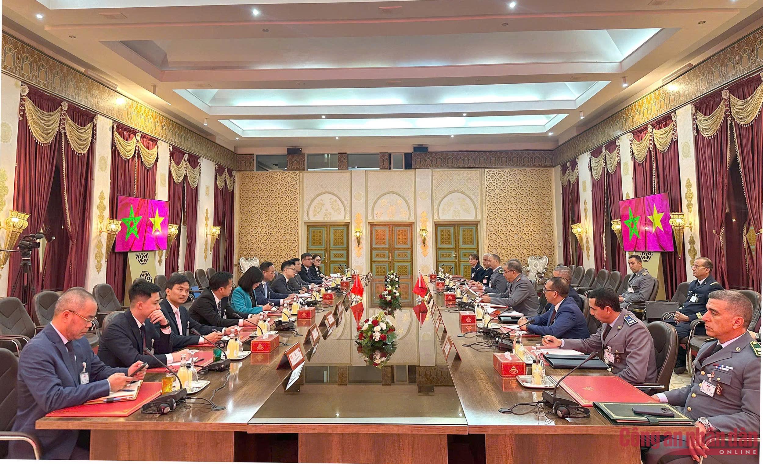 Trong khuôn khổ chuyến thăm, làm việc tại châu Phi, ngày 13/4 (giờ địa phương), tại Maroc, Thượng tướng Phạm Thế Tùng, Ủy viên Trung ương Đảng, Thứ trưởng Bộ Công an đã làm việc với Bộ Nội vụ Vương quốc Maroc.