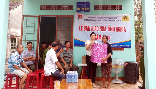 Sau gần 1 tháng thi công, ngày 14-7, Chi đoàn cơ sở Văn phòng Cơ quan Cảnh sát điều tra và Phòng Kỹ thuật hình sự Công an tỉnh Quảng Nam đã tổ chức buổi lễ bàn giao nhà tình nghĩa cho hộ gia đình nghèo của bà Cao Thị Tể (66 tuổi, trú thôn Mỹ Cang, xã Tam Thăng, TP Tam Kỳ).