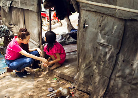 Bảo Anh không thể kiềm chế được cảm xúc của mình khi nghe Thanh chia sẻ những ước mơ của cô bé trong xót xa "Bây giờ, con không mơ ước gì, chỉ mong cha con có tiền chữa khỏi bệnh để sống thật lâu với con, thấy lúc con được cắp sách đến trường như bao bạn bè đồng trang lứa, con thích đi học lắm"