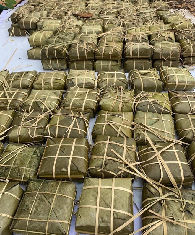 | Những đồng bánh chưng chuẩn bị để đưa đi tặng |