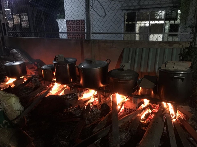 | Những nồi bánh chưng đang được nấu |
