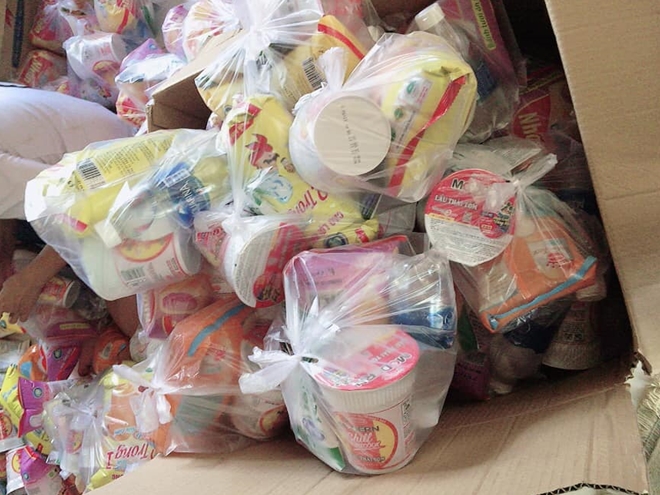 | Đây là những phần quà Tết được các bạn chuẩn bị để đi tặng |
