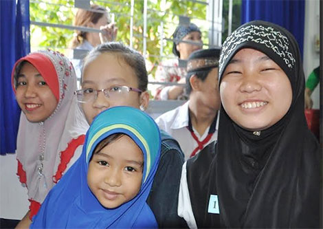 | Niềm vui trên gương mặt cô bé RuHaNi và các chị em bé HawMah trong ngày nhận học bổng. |