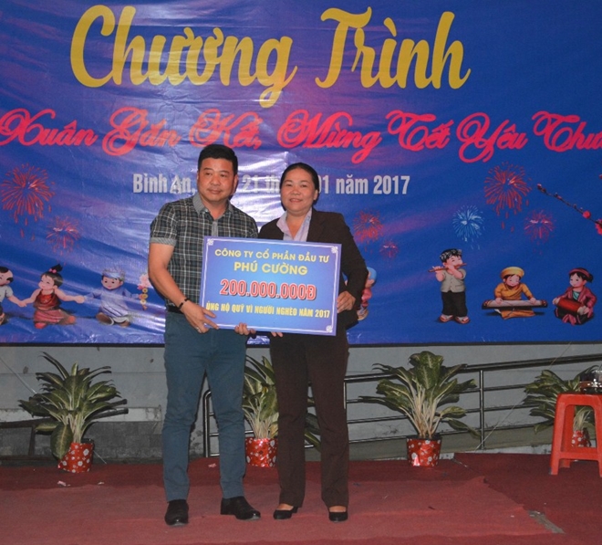 Tập đoàn Phú Cường đã trao 200 triệu đồng cho Quỹ “Vì người nghèo” quận 2 và 300 phần quà Tết (trị giá 150 triệu đồng) giúp cho các gia đình chính sách, các hộ nghèo, những người neo đơn, khuyết tật ở phường Bình An có được cái Tết đầm ấm.