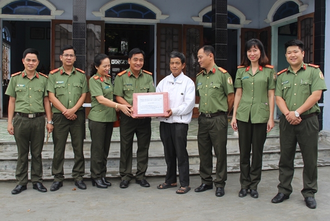 | Phòng QLXNC Công an tỉnh Thừa Thiên- Huế tặng quà cho đại diện gia đình mẹ Nguyễn Thị Cầu. |