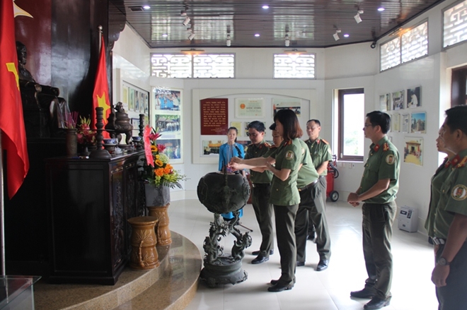 Vào sáng cùng ngày, phòng QLXNC Công an tỉnh Thừa Thiên- Huế tổ chức dâng hoa, dâng hương tại Nhà lưu niệm Bác Hồ ở thôn Dương Nỗ, xã Phú Dương, huyện Phú Vang.