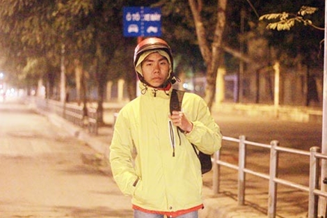 | Chàng sinh viên Bách Khoa Phan Ngọc Quý chạy xe ôm giúp đỡ bạn thân nằm trong viện. |