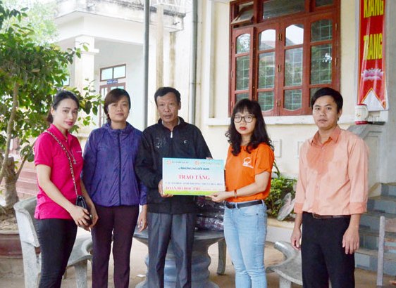 Nhằm giúp đỡ, hỗ trợ học sinh vùng lũ, cán bộ công nhân viên của Flamingo Đại Lải Resort, Hanoi Redtours đóng góp gần 300 triệu đồng hỗ trợ hoàn toàn học phí năm học 2016-2017 cho gần hơn 800 học sinh ở Quảng Bình.