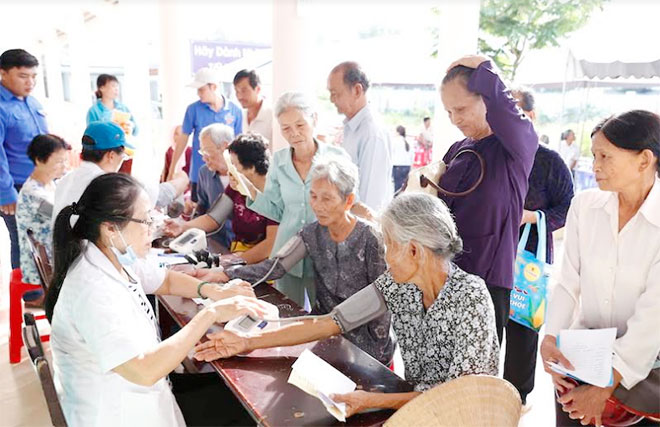| Đoàn y bác sĩ và các tình nguyện viên từ Tập đoàn Sovico và các đơn vị thành viên khám chữa bệnh miễn phí cho người dân. |