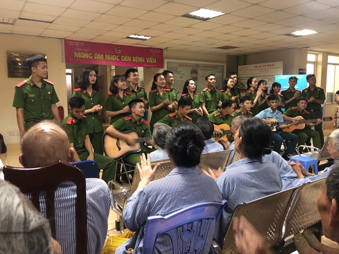 Tại phòng bệnh, nơi mà các bệnh nhân từng ngày, từng giờ phải đối mặt với ranh giới giữa sự sống và cái chết, nơi chứng kiến những nỗi đau không chỉ về thể xác mà còn cả về tâm hồn của các bệnh nhân, ngày hôm nay đã có một sự thay đổi đặc biệt. Sự thay đổi ấy đến từ những tấm lòng đầy ắp tình người, đến từ lời ca, tiếng hát chạm đếntrái tim của các thành viên trong Câu lạc bộ ghita Trường Đại học Cảnh sát PCCC. Những giai điệu tuyệt vời cất lên dường như đã xua tan đi nỗi buồn, sự mệt mỏi, khó nhọc vẫn luôn hiện hữu thường trực trên khuôn mặt của những bệnh nhân đang điều trị tại Khoa Ung bướu Bệnh viện 19-8.