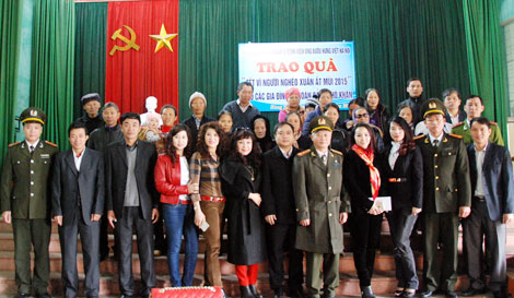 | Báo CAND, Bệnh viện Ung bướu Hưng Việt và các doanh nghiệp tại Hà Nội tặng quà Tết cho đồng bào nghèo tại xã Hùng Sơn. |