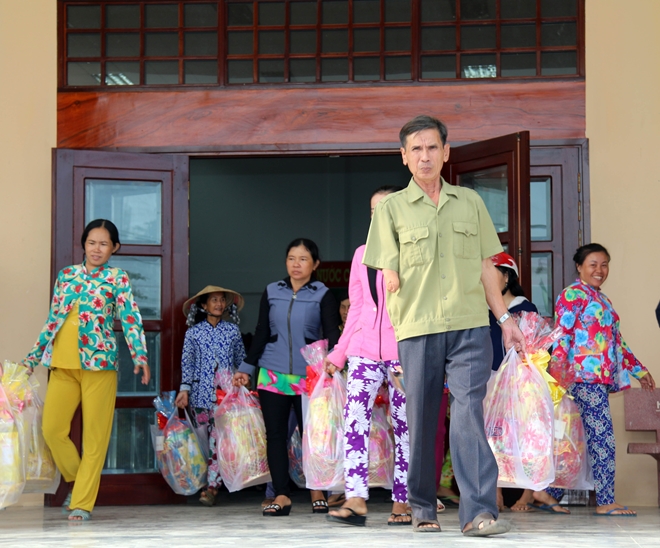 Những lời tâm sự chân thành của cụ Vạn làm cho chúng tôi thấy nghẹn ngào trong lòng. 25 phần quà tặng cho bà con nghèo, gia đình chính sách xã Thuận Hòa thật chẳng thấm tháp vào đâu…