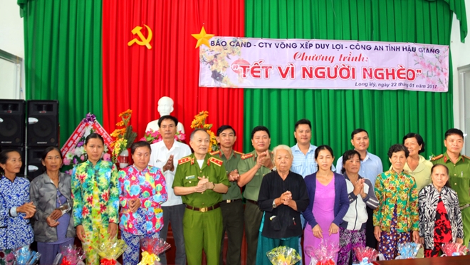 Năm nay, thông qua Báo CAND, Công ty TNHH Võng xếp Duy Lợi chuyển đến bà con nghèo phần quà Tết Đinh Dậu 2017 trên 850 triệu đồng; trong đó, dành cho đồng bào nghèo tỉnh Hậu Giang 100 phần quà, trị 50 triệu đồng.