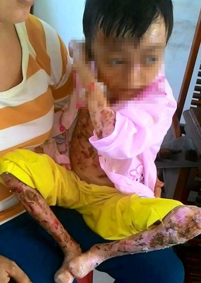 Nhà nghèo, bé gái 8 tuổi đau đớn sống cảnh bong từng mảng thịt