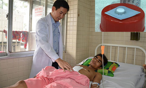 Bốn viên trôi xuống dạ dày và ra ngoài theo đường thải tự nhiên; còn một viên mắc lại đâm vào thực quản. Sau 1 ngày, BN thấy khó thở và sốt. Khi vào viện Đa khoa Bình Định phát hiện bị tắc ruột nên BV này đã tiến hành mổ cho bệnh nhân, thực hiện tách dính ruột.