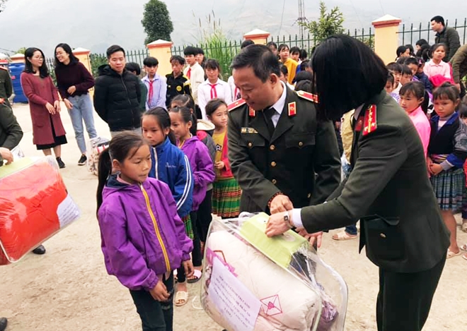 Cũng tại đây, đoàn thiện nguyện Học viện Chính trị CAND đã tiến hành trao 10 suất quà cho 10 gia đình cán bộ, giảng viên, công nhân viên Học viện có hoàn cảnh khó khăn; 50 suất quà Tết cho 50 hộ gia đình chính sách, hộ nghèo có hoàn cảnh đặc biệt khó khăn; gửi tặng 200 áo ấm, 100 chăn ấm, bánh kẹo cho 300 học sinh các trường tiểu học, trung học. Ngoài ra, đoàn còn tổ chức tặng quần áo cũ cho bà con.