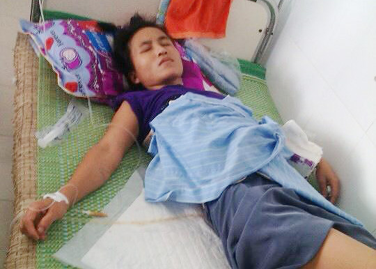 Khi nghe bệnh viện ở quê cho biết cần phải chuyển lên tuyến trên gấp, anh tất tả khắp nơi vay mượn lo chi phí chuyển lên Bệnh viện Ba Lan, TP Vinh. Tại đây, các bác sĩ thông báo phải phẫu thuật sớm, mặc dầu có bảo hiểm hộ nghèo và số tiền còn lại vay mượn của bạn bè lúc chị Bích còn điều trị tại bệnh viện quê vẫn không đủ lo chi phí phẫu thuật, tiền viện phí, thuốc men.