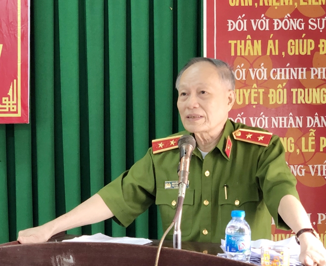 | Trung tướng, Anh hùng LLVTND Nguyễn Xuân Xinh, phát biểu tại buổi trao quà. |