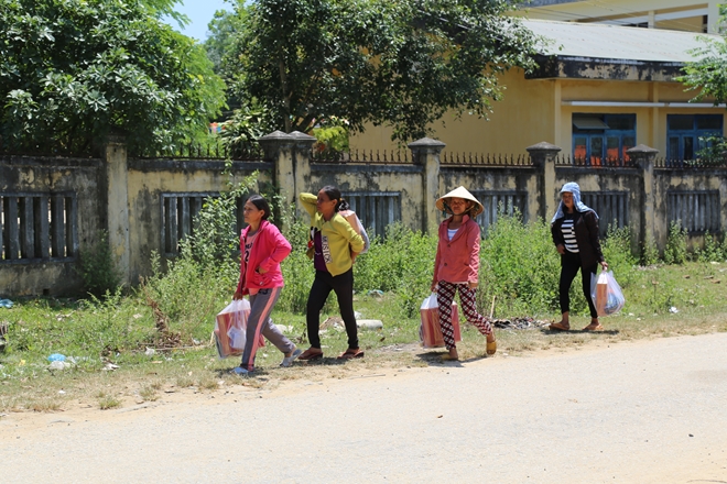| Phấn khởi khi nhận được các suất quà trap tặng từ đoàn thiện nguyện. |