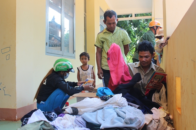 Gần đó, chị Thị Chanh ở ấp Bù Tam cũng đang tất bật lựa sách vở cũ, vui mừng: “Gia đình Thanh có 2 đứa con. Đứa lớn học lớp 6, nhỏ học lớp 3. Gia đình thuộc diện hộ cận nghèo, mọi chi phí trong gia đình dựa vào 5 xào điều Nhà nước hỗ trợ. Mỗi năm đến ngày tựu trường, gia đình phải mượn nợ để lo cho con đi học, nào là quần áo, sách vở, áo quần…Có quầy hàng miễn phí này gia đình Thanh rất phấn khởi, vì giảm được gánh nặng cơm áo, gạo tiền.”