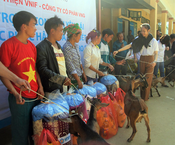 Tương tự, xã Hà Hồ, huyện Trạm Tấu (Yên Bái), là nơi có 4 người chết và mất tích, 14 nhà bị sập và bị cô lập trong nhiều ngày do trận lũ lịch sử hồi giữa tháng 10. Dù việc di chuyển, tiếp cận người dân gặp nhiều khó khăn do tuyến đường độc đạo lên xã bị chia cắt, sạt lở sau trận lũ, quỹ VNIF vẫn kịp thời hỗ trợ 150 hộ dân có hoàn cảnh khó khăn trong xã 20 cặp dê giống, 1000kg lúa nếp giống, 60 bộ chăn màn, 1500 kg gạo cùng nhiều nhu yếu phẩm khác, tạo điều kiện cho họ sớm ổn định cuộc sống và tái sản xuất.