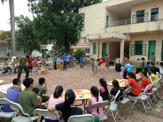 Bên cạnh đó, các tình nguyện viên còn tiến hành các hoạt động giao lưu văn nghệ, tổ chức các trò chơi bố ích nhằm đem lại niềm vui, tiếng cười cho các em.