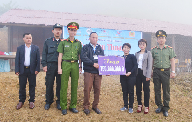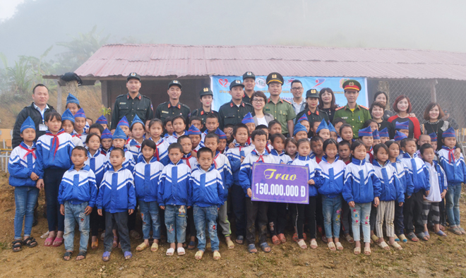 Tại điểm trường chính, Đoàn Công tác gồm các cán bộ chiến sỹ Công an tỉnh, đoàn thiện nguyện "Quỹ trao tặng yêu thương" Hà Nội, đại diện Công ty Đông y gia truyền Tiến Hạnh, Công ty cổ phần Vinalines Logistic Việt Nam và Công ty cổ phần vận tại TM&DV Đất Cảng đã tiến hành trao tặng 150 triệu đồng tiền mặt tới đại diện nhà trường, góp phần hỗ trợ nhà trường xây nhà bán trú cho học sinh.